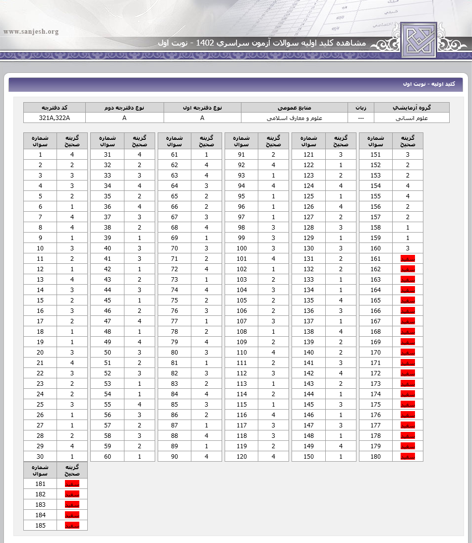| دانلود کلید پاسخ نامه کنکور انسانی 1400 |